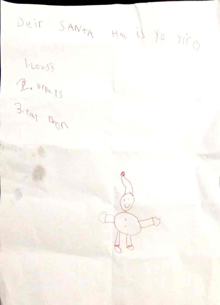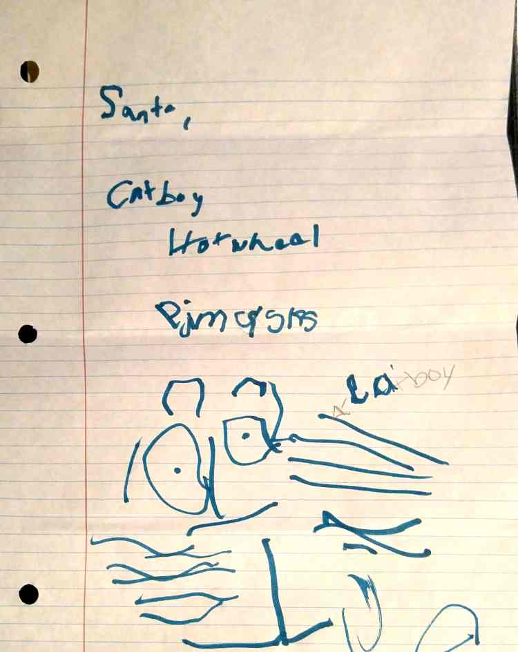 One family brought in two boys with autism. It was a challenge to get them to sit with Santa. I would manage to start interacting with one when the other would wander off. I’d then switch focus to the wanderer and lose the other. Finally, I had mom and dad sit on the floor with me and each hold a child. Even then we couldn’t get both of their attentions.